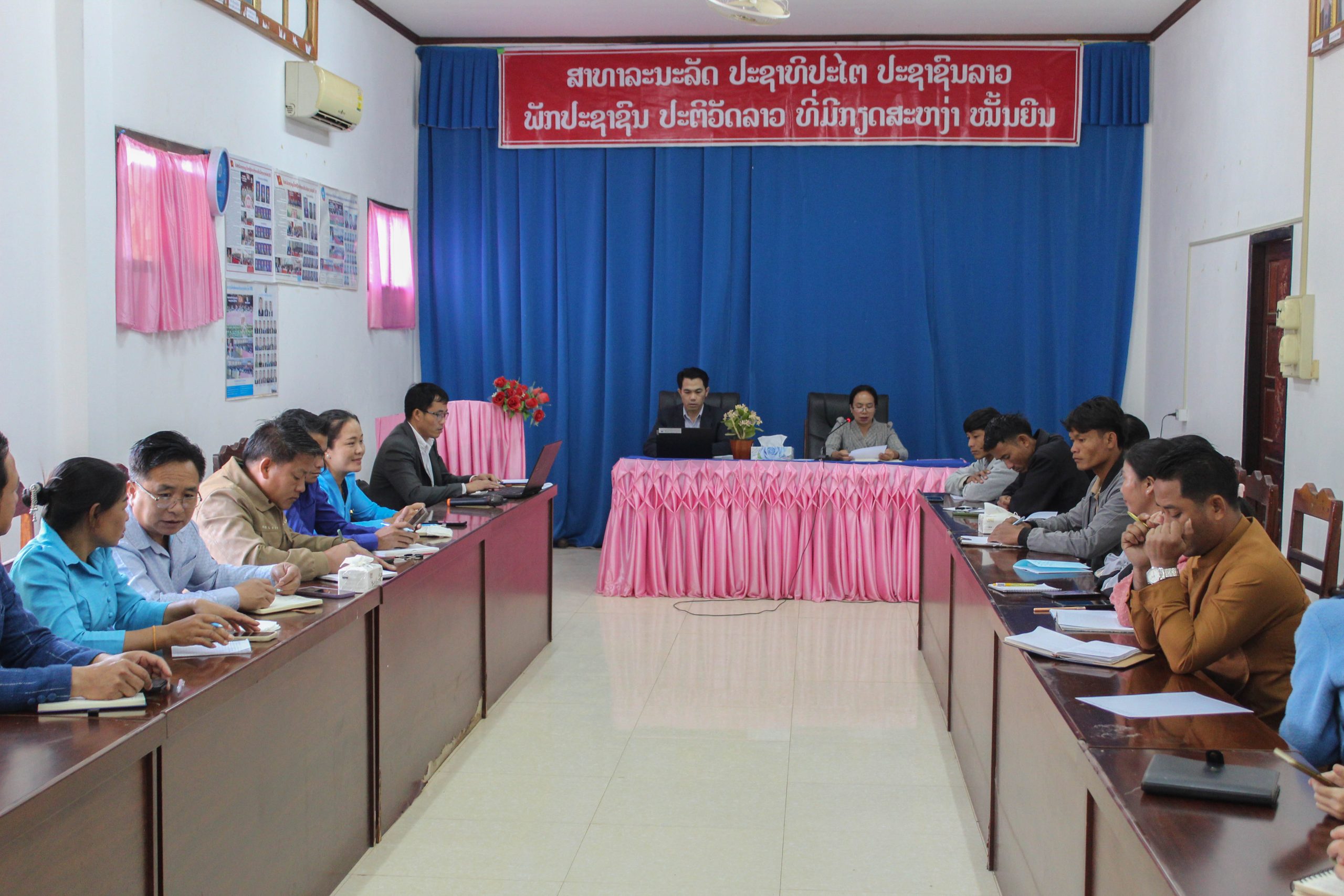 The meeting was chaired by Ms. Davanh Kingsady, Head of the One-Door-Stop Service Center of Beng District, Oudomxay Province. A total of 23 participants attended, including 11 women.